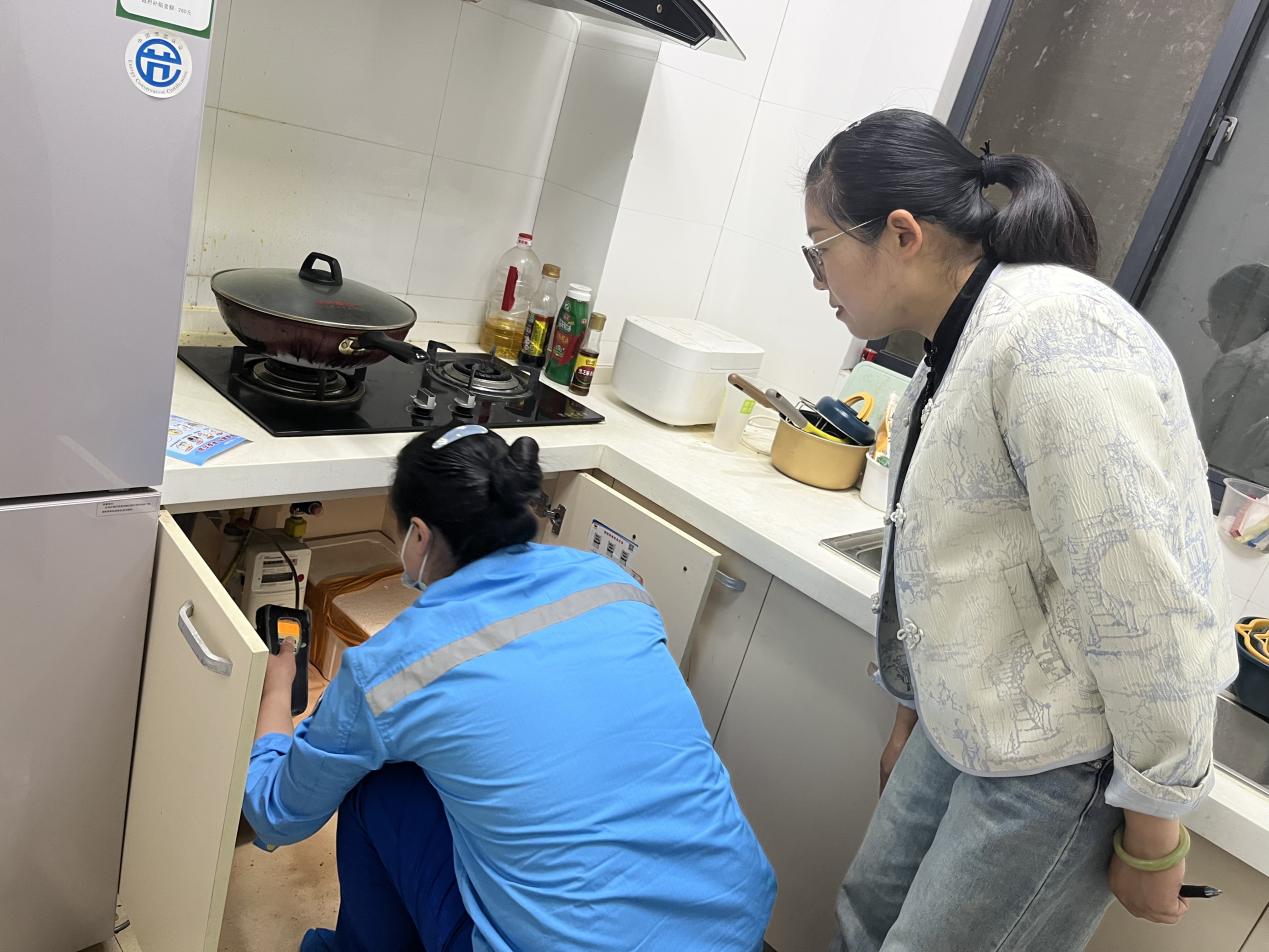 工作人員對燃?xì)庥脩糸_展逐戶檢查,重點(diǎn)對天然氣接口軟管是否老化、燃?xì)馄骶呤欠癯谑褂?、是否有熄火保護(hù)措施,燃?xì)忾y門是否正常使用等問題進(jìn)行全面檢查。在檢查過程中,發(fā)現(xiàn)廚房操作間積堆物品、線路交叉重疊等現(xiàn)象,要求客戶立即整改。