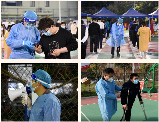 在這個(gè)集宿區(qū)內(nèi),有一群人奮戰(zhàn)在抗疫最前線。大白小藍(lán)是他們最矚目的通行證工作證,他們身份多樣,上演著超級“變、變、變”,他們既是細(xì)致入微的醫(yī)生助手,也是發(fā)放物資的大力水手,還是現(xiàn)場保障的行家里手。