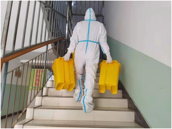 我需要兩個(gè)垃圾袋,我需要口罩,我需要……3000余名員工需求保障,他們“有求必應(yīng),有需必達(dá)”,成了園區(qū)公舍里的“宅急送”。他們每天爬樓上下,為每個(gè)房間送上垃圾袋,及時(shí)清理生活垃圾,每天微信步數(shù)都在20000以上。
