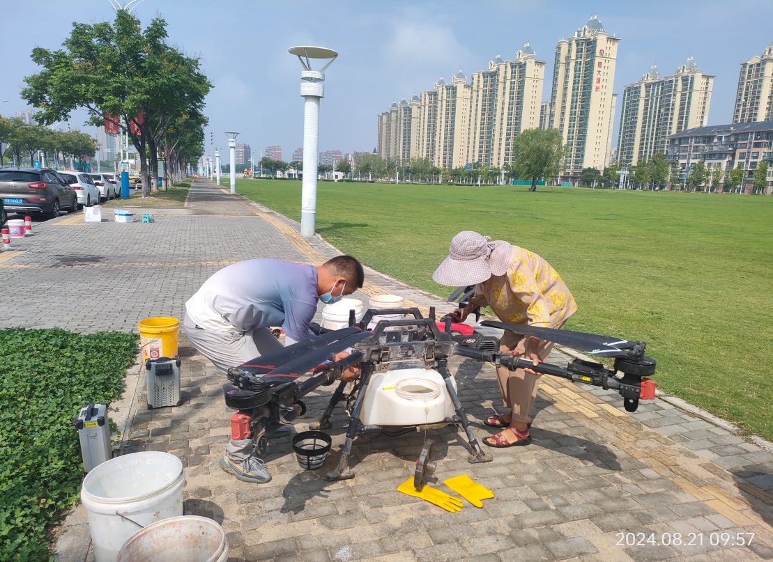 此次為園區(qū)首次采用無人機(jī)噴灑農(nóng)藥,在防治前,建發(fā)公司綠化管理人員和路段養(yǎng)護(hù)技術(shù)人員多次實(shí)地勘探區(qū)域內(nèi)試驗(yàn)點(diǎn),結(jié)合人流量等多種因素,最終噴灑農(nóng)藥區(qū)域選擇在中央商務(wù)區(qū)。在專業(yè)技術(shù)人員的操控下,植保無人機(jī)按預(yù)設(shè)路線不斷前進(jìn),細(xì)密的噴液滴通過霧化器處理后均勻地噴灑在草坪上。不到4小時(shí),一次全面精準(zhǔn)的病害防治工作已經(jīng)高效完成。