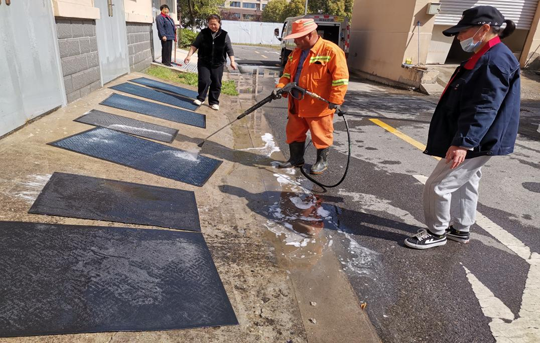 小小的地墊,暖暖的關(guān)懷,井然有序的清洗現(xiàn)場(chǎng)、忙碌交加的工作人員、煥然一新的腳墊,一時(shí)間成為小區(qū)一道溫情滿滿的風(fēng)景線,既干凈了墊子,也溫暖了居民心。