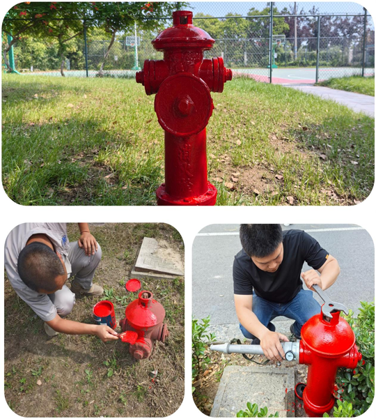 為及時高效完成消火栓翻新工作,工作人員迅速行動,選用材料,攜帶鐵刷、鋼絲球、扳手和油漆,小心拆開消防栓,細心清除銹跡,認真打油上漆,給區(qū)域內(nèi)的消火栓進行除銹打油穿“新衣”,確保消防設施正常有效使用。同時,針對消防栓啟閉閥是否靈活、悶蓋內(nèi)膠圈是否完整、消防栓零部件是否有損壞缺失、水壓是否正常等情況,進行了現(xiàn)場測試并做好登記和維修,以確保消火栓的安全完整。