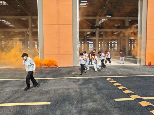 隨著警報響起,滅火組、疏散組、救護組、警戒組、通信組迅速響應,各司其職。在工作人員引導下,參與員工按照預定疏散路線快速有序撤離,僅用3分鐘便全部安全抵達安全疏散點。
