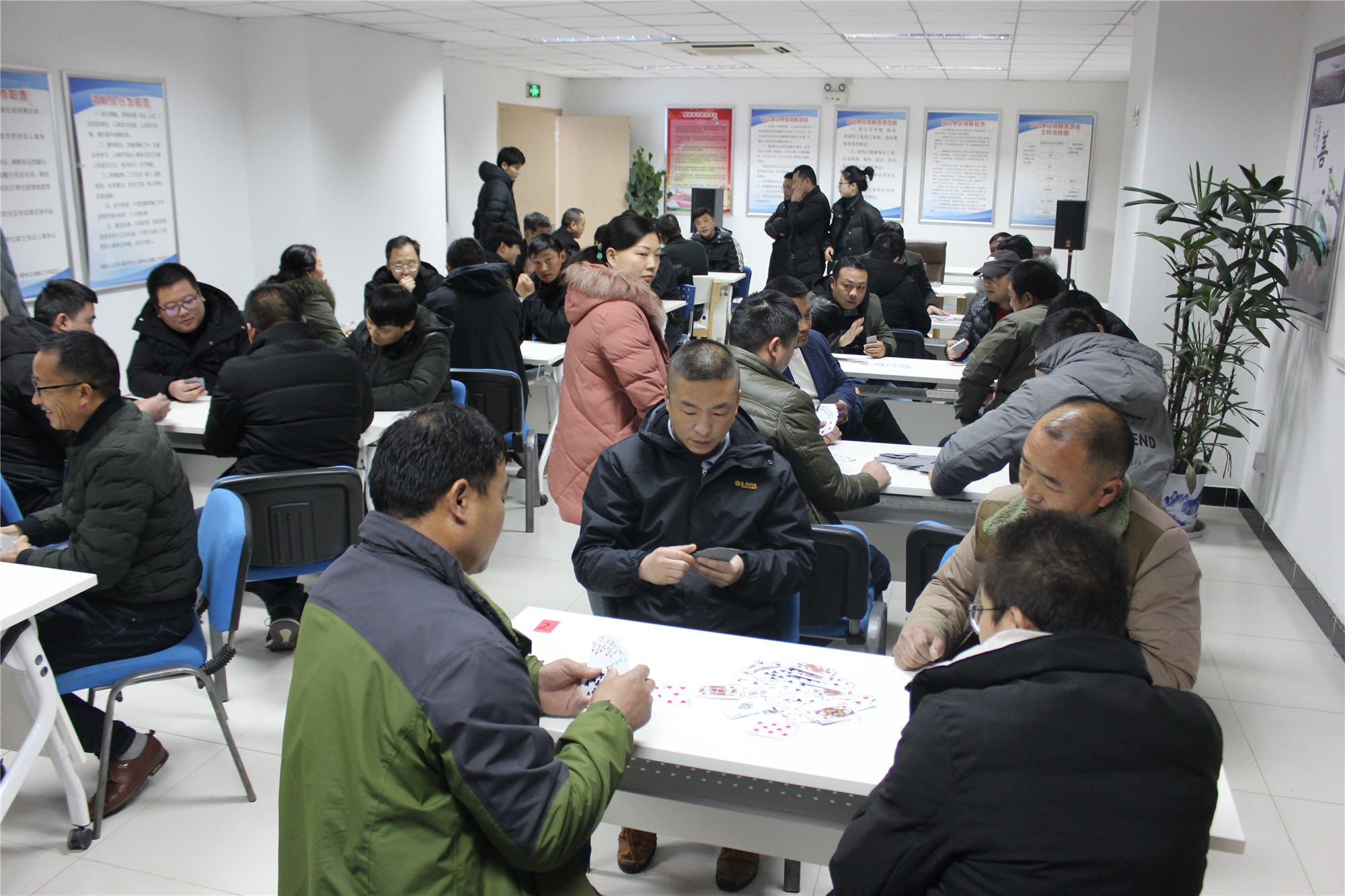 為豐富公司各項(xiàng)目業(yè)主業(yè)余生活,增進(jìn)業(yè)主與公司交流,傳遞鄰里情誼,營(yíng)造和諧的新春節(jié)日氛圍, 110日,由公司舉辦的摜蛋比賽在園區(qū)公舍民眾聯(lián)絡(luò)所拉開帷幕,各項(xiàng)目業(yè)主積極響應(yīng),共有40名選手參加比賽。