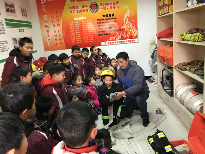125日上午,蘇宿外國語學校師生再次走進園區(qū)公舍微型消防站,感知消防,提高火災安全意識,學習消防知識?;顒又?,工作人員向師生們介紹了消防器材的名稱及如何使用,邀請小朋友體驗穿戴消防服,講解、示范油盆滅火,模擬火災現(xiàn)場,體驗火場逃生自救,使師生們了解災難來臨時如何應對,通過學習,確保同學們度過一個愉快的平安假期。