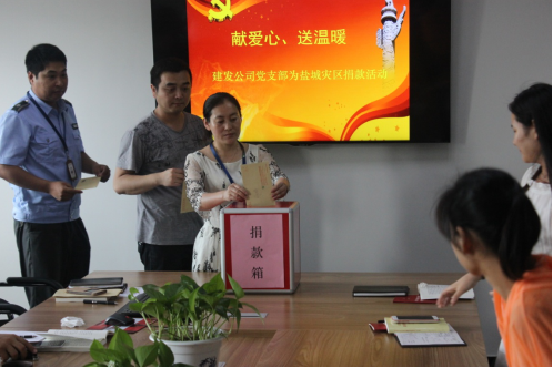 黨課結(jié)束后,黨支部組織開(kāi)展“獻(xiàn)愛(ài)心、送溫暖,向鹽城災(zāi)區(qū)捐款活動(dòng)”,19名黨員、預(yù)備黨員和入黨積極分子極響應(yīng)號(hào)召,踴躍參與到捐款行列中,向受災(zāi)地區(qū)群眾奉獻(xiàn)自己的一份愛(ài)心,共獲得捐款2900元。同時(shí),黨支部也向公司全體職工發(fā)出了向?yàn)?zāi)區(qū)捐款的倡議,目前捐款工作正在進(jìn)行,捐款活動(dòng)結(jié)束后,獲得的款項(xiàng)將通過(guò)園區(qū)工委辦公室轉(zhuǎn)交鹽城災(zāi)區(qū)。