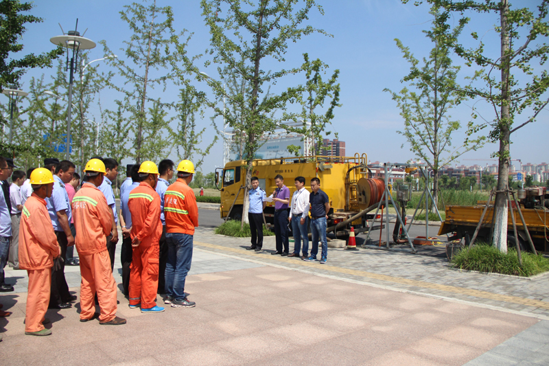 本次演練模擬強降雨期間,區(qū)內河道水位超出警戒線,部分道路出現(xiàn)嚴重積水現(xiàn)象。園區(qū)防汛抗旱指揮部根據(jù)防汛應急預案,調動專業(yè)搶險隊伍及設備,開展應急處置工作,檢驗搶險人員熟練操作設備情況、設備物資的運行情況等。