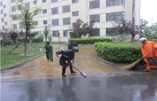 雨天沖洗道路,雖比平日工作更為辛苦,但效果好且節(jié)水環(huán)保,物業(yè)管理部充分利用天然的水資源,借助雨水沖力,清潔人行道、溝槽積垢,以及清理路面口香糖、油污等污垢,從而達(dá)到事半功倍的效果,同時雨天清潔對交通影響較小,集中清潔在一定程度上不會對市民的出行造成太大影響。